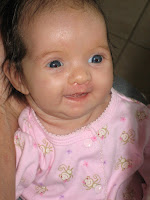 Caroline cooed and smiled at the pediatrician today. She was thrilled and told me she has a good brain and seems quite social. This was the only thing that warmed my heart today. I have to now wake her every three hours in the night and keep to the two hours in the day time. It is completely exhausting honestly. Than to have little weight gain - I am beginning to think what is the point - let me rest. Then Dr. Downing said if she doe snot take 16-18 0z daily we will discuss a feeding tube in three weeks - so I am just bummed today! What the Dr do not know is that I am feeding , waking and preparing bottles and this child is doing good to eat 16 0z a day!